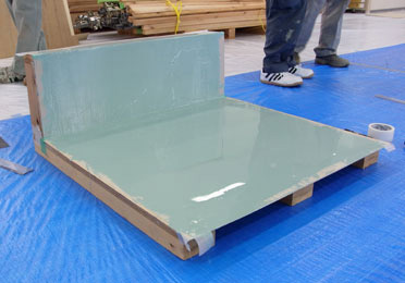 技能検定はぶっつけ本番では絶対に合格できません。そのためにも先輩技能士のお手本施工見て検定試験を実感し、自分でもコテやヘラを握って実際の架台で施工体験をすることにより、本番で段取り良く施工できるための講習会を毎年実施しております。